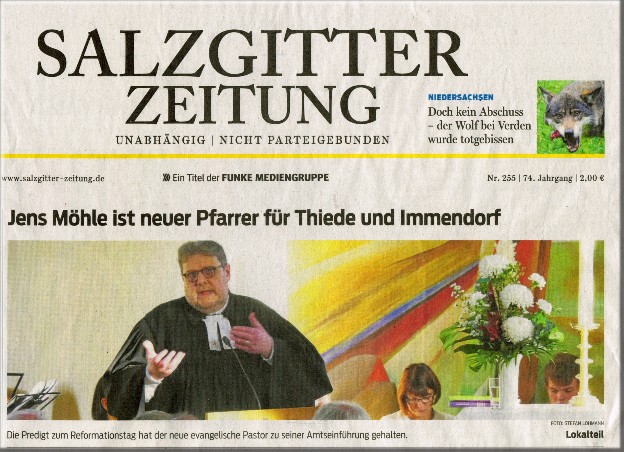 Am Sonntag, den 24.03.2019 fand um 9.30 Uhr in der St. Georg Kirche in Thiede der Gottesdienst zur Vorstellung des Bewerbers für die vakante Pfarrerstelle in den Kirchen Gemeinden Salzgitter Thiede & Salzgitter Immendorf stattMit diesem Gottesdienst hat sich Pfarrer Jens Möhle den Gemeinden und dem gesamten Pfarrverband als Bewerber für die vakanten Pfarrerstellen vorstellt.