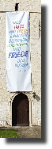 - Wie im letztem Jahr wurde auch in diesem Jahr unser Kirchturm zu Ostern hin mit einem Transparent versehen.
